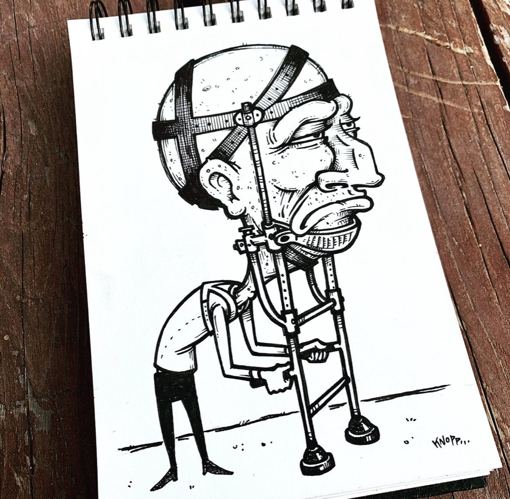 #egomaniac #bighead #crainium #dome #bulkhead #penandink #illustration #headgear #braces #art #darkart